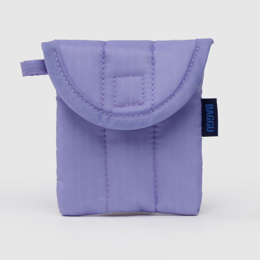 Protect your precious earbuds with this cozy little home. Lets face it, they get dragged and thrown around everywhere, they deserve a little love. Includes a keychain loop (great for hanging on a lanyard), velcro flap closure, measures 3" × 2 ¾", recycled ripstop nylon, recycled PET polyfill and machine washable.