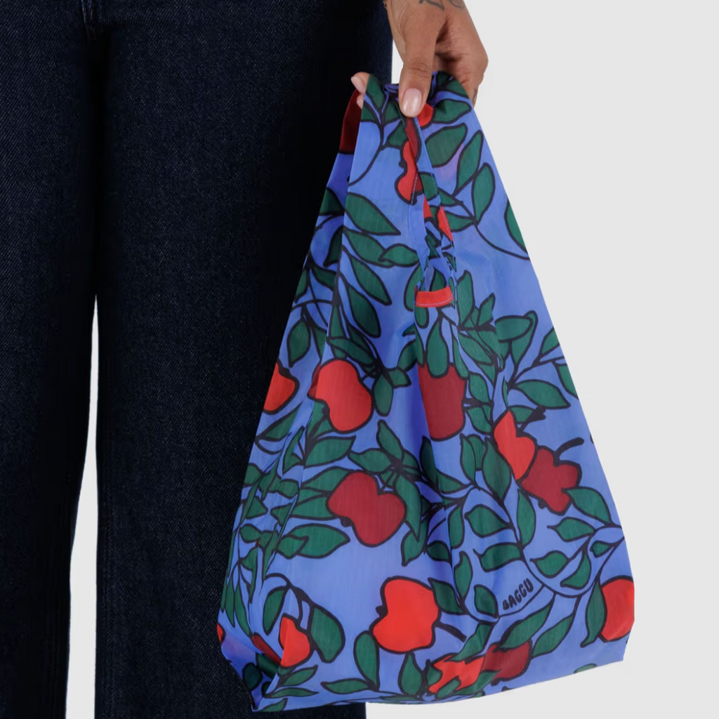 Just like the Standard Baggu, but Baby Baggu Reusable shopping bag is smaller and cuter.  Perfect little shopping bag for those quick trips for essentials like chocolate and ice cream!  It also folds into a handy little square to keep in your handbag.  Ready when you need it!