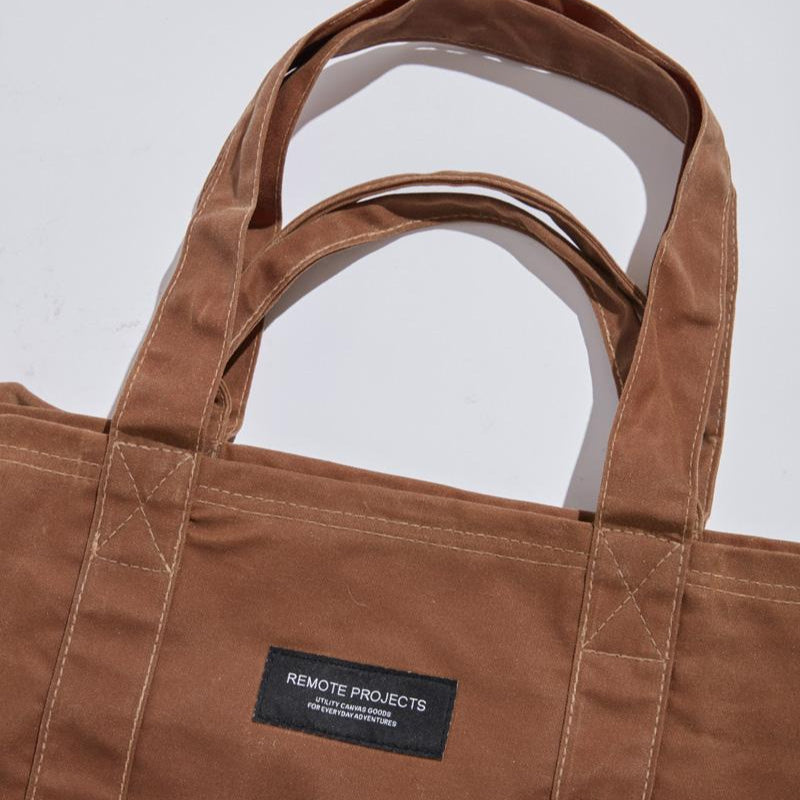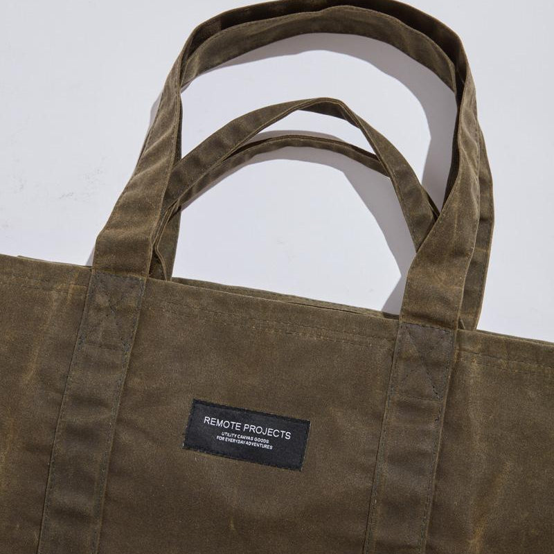 Remote Projects Utility Bags are made with our signature combination of two layers of heavy-duty canvas for superior strength and versatility. The exterior is made with 10oz Army Duck Waxed Canvas that ages beautifully with time, while the interior is a finely woven, waterproof, mildew and rot-resistant canvas.
