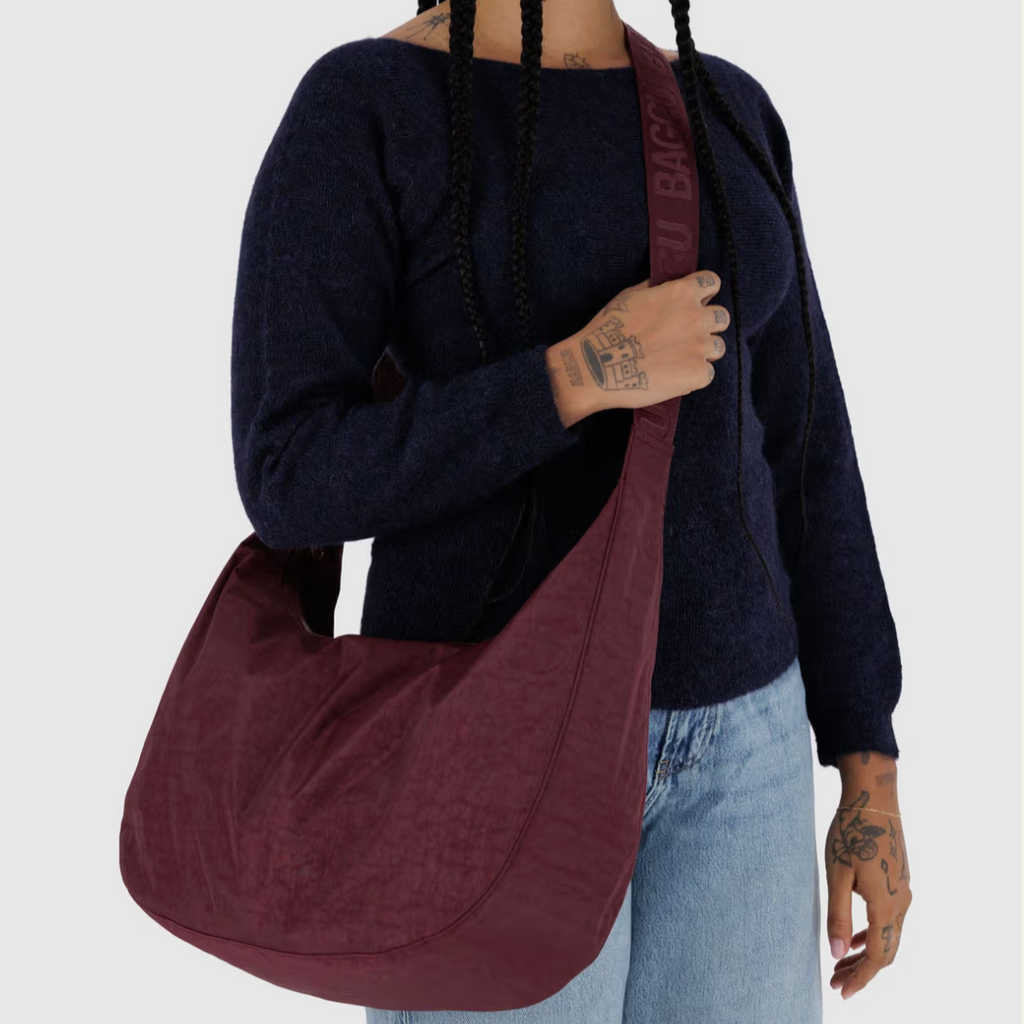 The Baggu Large Nylon Crescent Bag is larger than the very popular medium crescent, roomy enough to fit a laptop, plus all of your essentials and more! Complete with an interior zip pocket that makes it easy to stay organised. Great for travel and everyday.