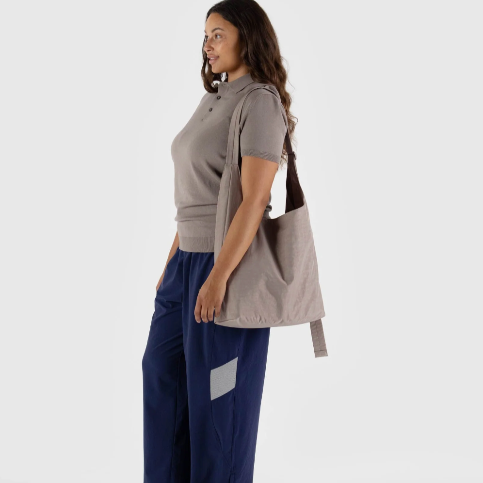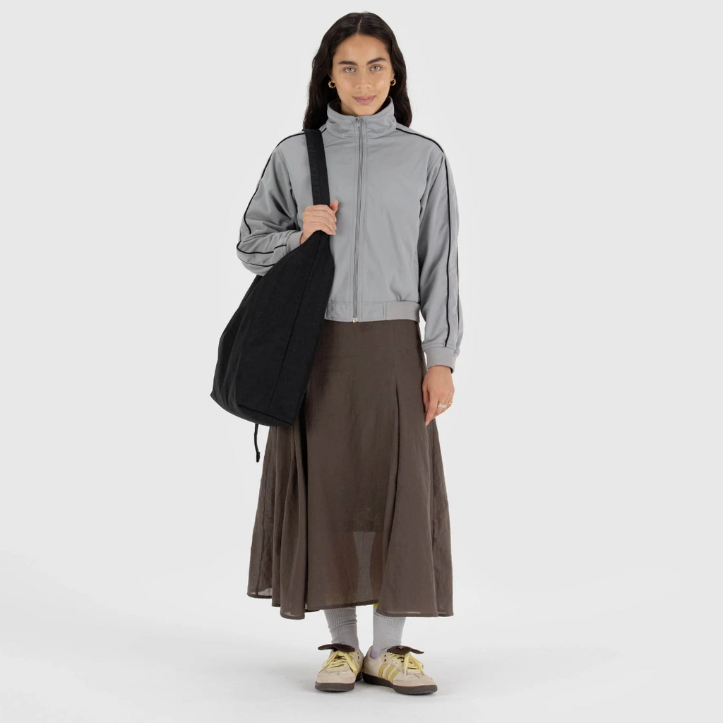 The slouchy, softly structured Baggu Large Nylon Sling bag with an adjustable strap is so comfy against the body you wont want to take it off! Perfect for work or uni. This super generous bag can be worn cross body or as a shoulder bag. So big it could even be used for an overnighter. Interior zip pocket with a magnetic closure. Fits a 13/14” Puffy Laptop Sleeve.