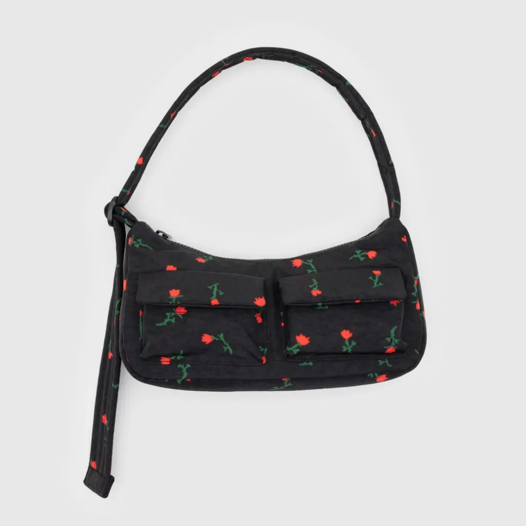 We love this new cargo style from Baggu. The Cargo shoulder bag is a baguette style purse with two external pockets for easy access to your essentials. The perfect bag for a night out!