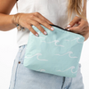 This versatile pouch will keep your belongings safe from spills and splashes by the water and your everyday essentials organised.  It's perfectly "suited" for use as a wet bag, or carry one as a cute clutch for a night on the town!