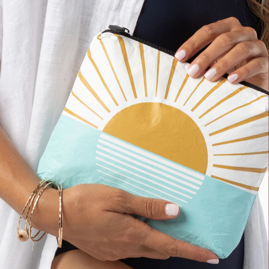 SPLASH-PROOF® is the next best thing to waterproof! Your belongings will be protected from a light splash, light rain, or a cocktail spillage, but please do not submerge your ALOHA Collection pouch with belongings inside. The zipper and seams of ALOHA Collection bags are not watertight.