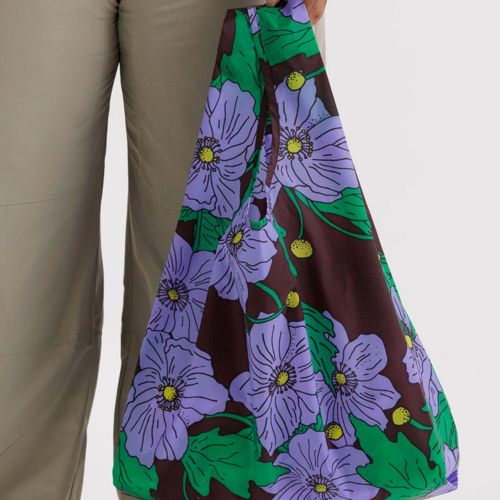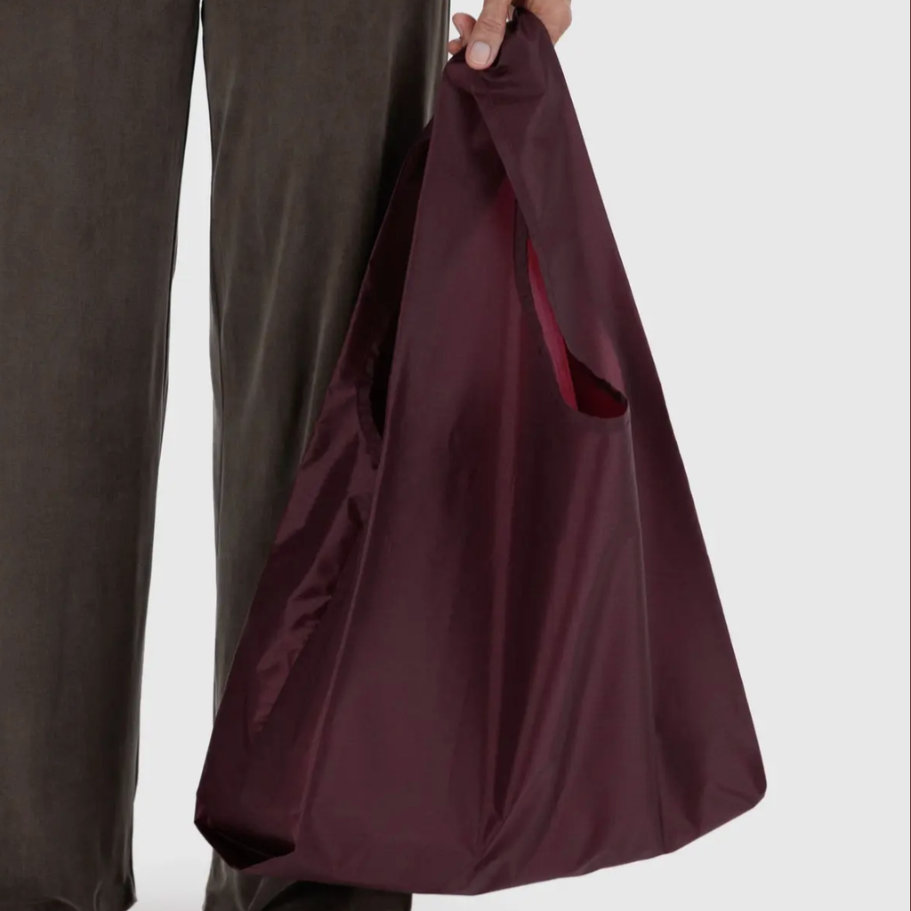 The Standard Baggu is a best seller and too beautiful to limit to holding only groceries. It will go anywhere and hold anything. Super sturdy and durable. Sits easily in the hand or over the shoulder. They fold flat and are machine washable.